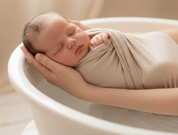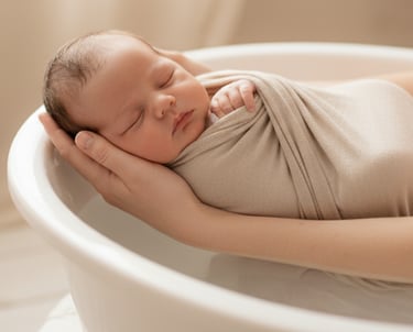 Chaque geste est guidé par la douceur et la confiance, pour lui offrir un espace sécurisant où il peut se relâcher, se détendre et retrouver les sensations familières de sa vie intra-utérine.